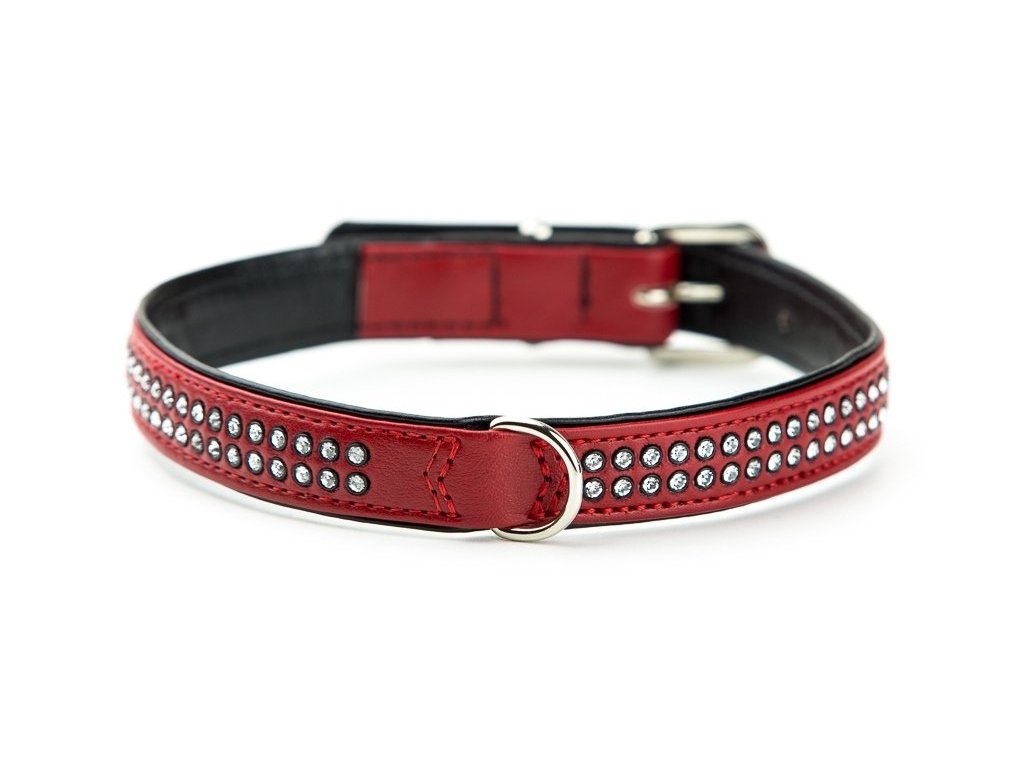 Obojok pre psy vyrobený z koženky so Swarovski kryštálmi Crystal M pre obvod krku 35-41 cm vo farbe červená. Dva rady kryštálov Swarovski.
