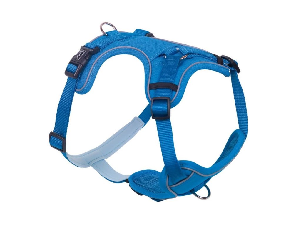 Ergonomicky tvarovaný postroj Nobby Mailo XS pre aktívne psy v svetlomodrej farbe.