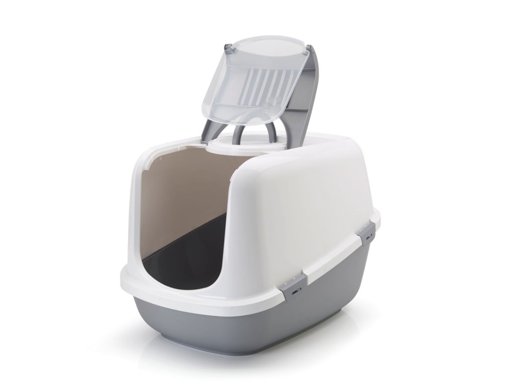 Toaleta Nestor sa výborne hodí pri navykaní bojazlivých mačiek či mačiatok na toalety s krytom. Spočiatku nechajte kryt vyklopený, aby si mačka mohla pomaly zvykať.