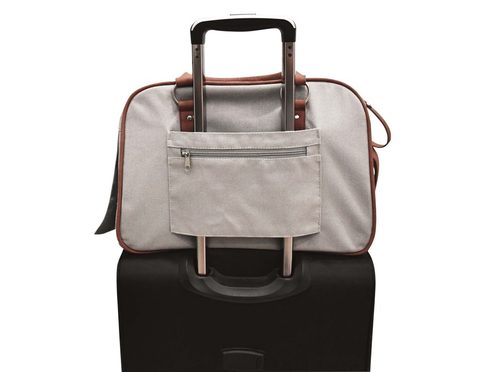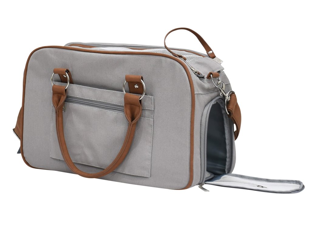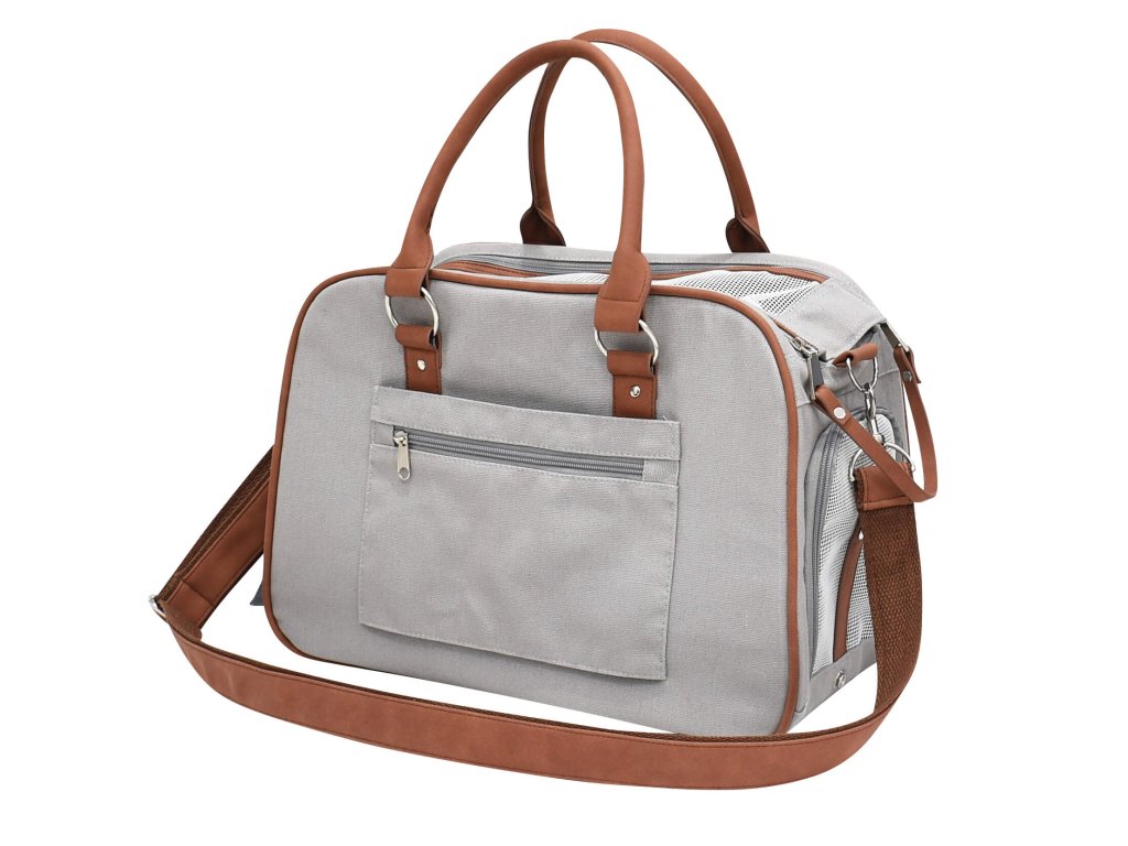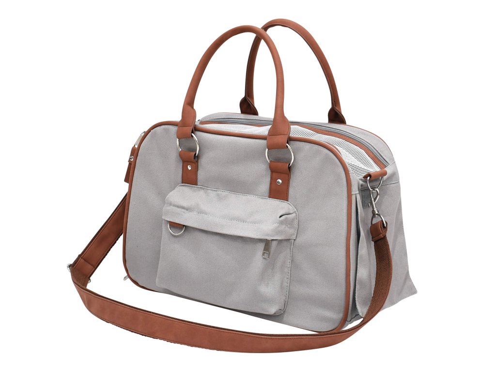 Elegantná taška pre psy a mačky do 6kg na cestovanie Nobby Perka v svetlosivej farbe s rukoväťou a ramenným popruhom z imitácie kože.