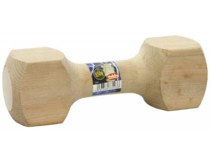Pevná aportovacia hračka pre psy z glejených veľmi tvrdých driev v tvare činky Nobby o hmotnosti 1kg