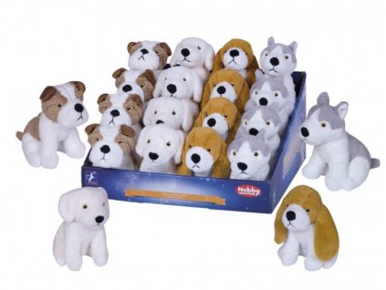 Mäkká plyšová hračka pre psy s pískatkom Nobby Schlappi 20cm v displayi 16ks v bielej a hnedej farbe