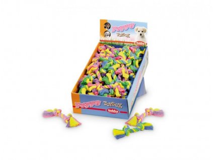 Robustná lanová hračka pre psov v tvare činky so sýtymi farbami. Veľkoť: 26cm