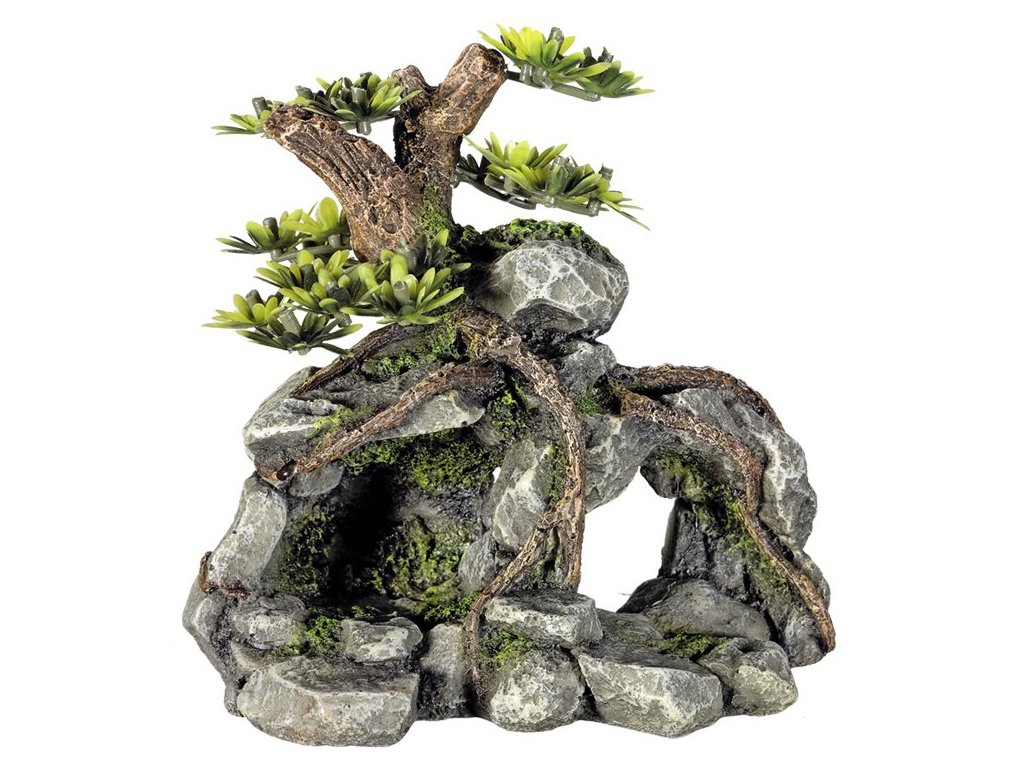 Dekorácia do akvária značky Nobby "STONE CAVE"s rastlinami. Vyrobené z Polyresinu (syntetickej živice) Veľmi detailné prevedenie. Netoxické - neutrálne na biologickú rovnováhu v akváriu. Veľkosť 29,7x13x25,2 cm.