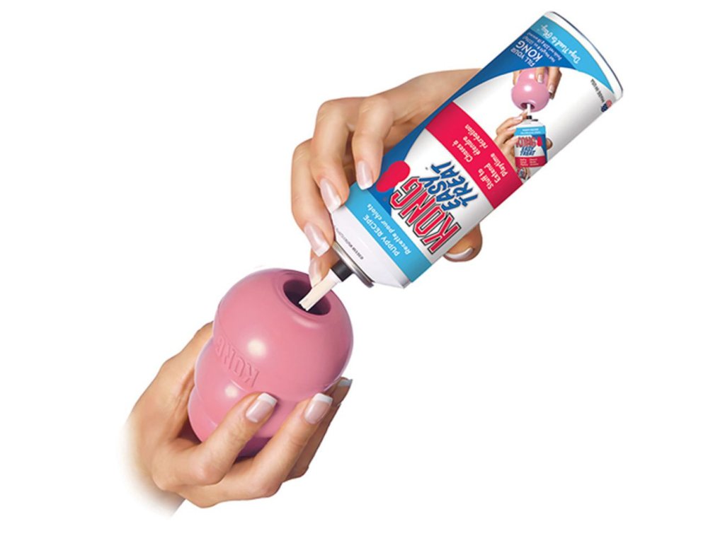 - dá sa naplniť napr. žuvacími maškrtami, sušienkami alebo chutnou pastou od firmy KONG® Easy Treat (Kliknite sem)