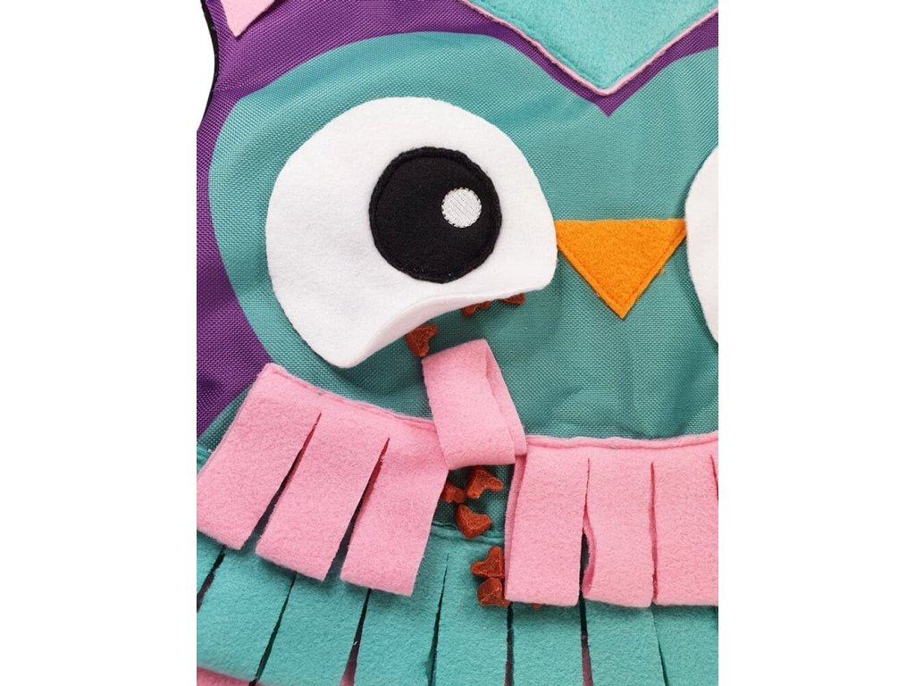 Interaktívna hračka pre psy a mačky Nobby "Owl" koberec na snacky o veľkosti 53x55cm so spodnou stranou vybavenou protišmykovými bodmi. Zábavná podložka pre psy a mačky od Nobby je aktívna hračka, ktorá zaujme každého psa alebo mačku. Tento hravý spôsob hľadania potravy má pozitívny vplyv na správanie zvieraťa a môže ho zabaviť a zároveň podporiť rozmýšľanie u psa. Okrem toho môže byť rohož použitá aj ako protišmyková podložka u psov na oddych a relaxáciu.