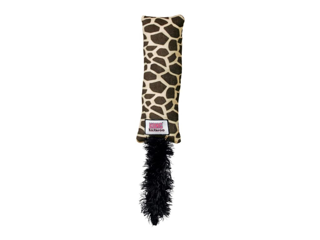 Vankúš z veľmi jemného materiálu s plyšovým chvostom a catnipom pre mačky KONG® Kickeroo žirafa