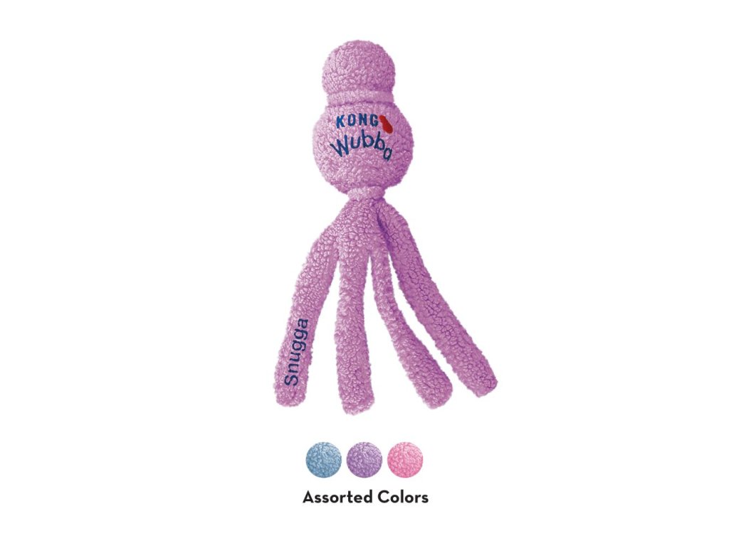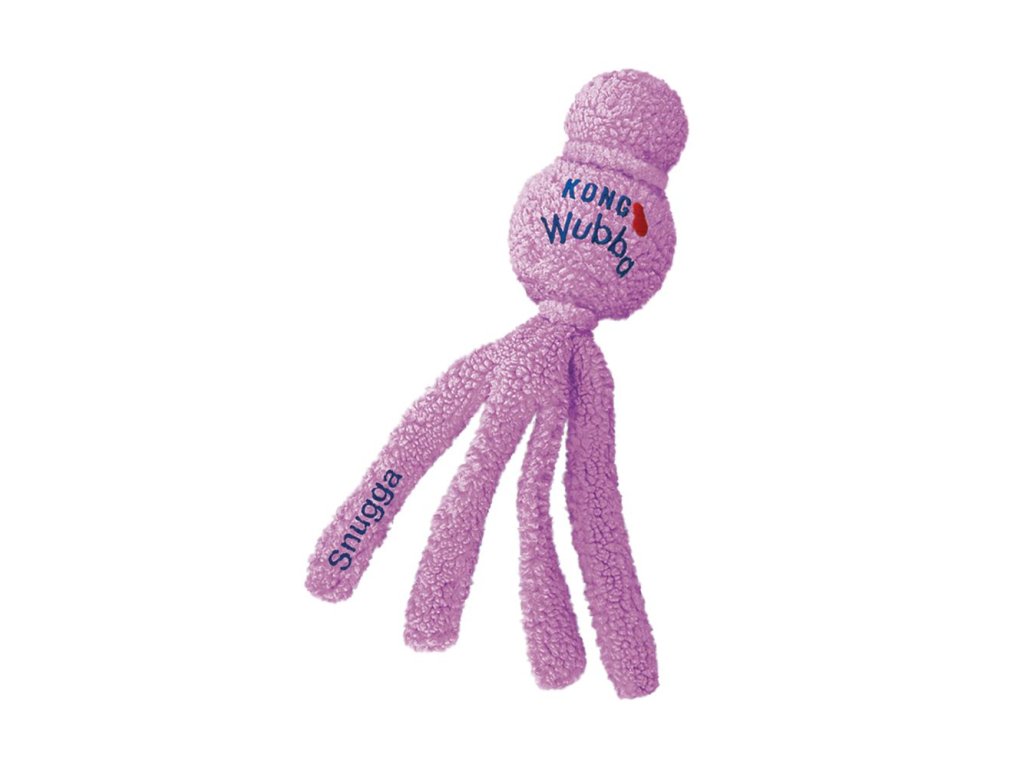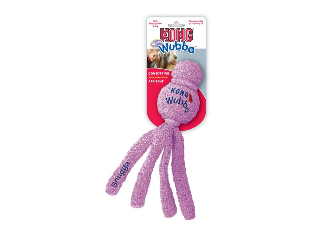 KONG® Snugga Wubba je interaktívna hádzacia hračka. Vnútri nie sú žiadne pískadlá, preto je hračka vhodná pre tiché hranie doma. Mäkký poťah z hrubej fleesovej tkaniny sa pohodlne pritúli a je skvelý na hry v interiéri alebo exteriéri. Vďaka svojmu tvaru a dlhým triasňam je hračka KONG® Snugga Wubba vhodná na aportovanie. Tvar hračky umožňuje psovi hračku pohodlne uchopiť a doniesť ju späť majiteľovi k novému vyhodenie.