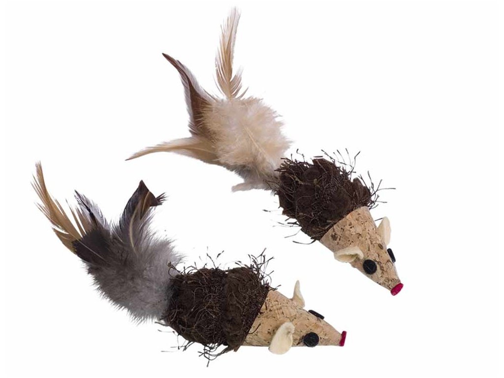 Chrastivé korkové myšky pre mačky s pridaným catnipom a pierkami Nobby Korková myš 2ks 7cm a 12cm