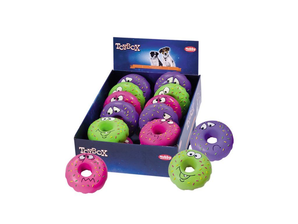 Latexová hračka BOX Mix farieb donaty s tvárou 12ks