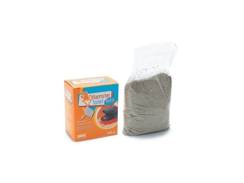 Piesok do krytej tôalety pre škrečkov a malé hlodavce Savic v balení 500g.