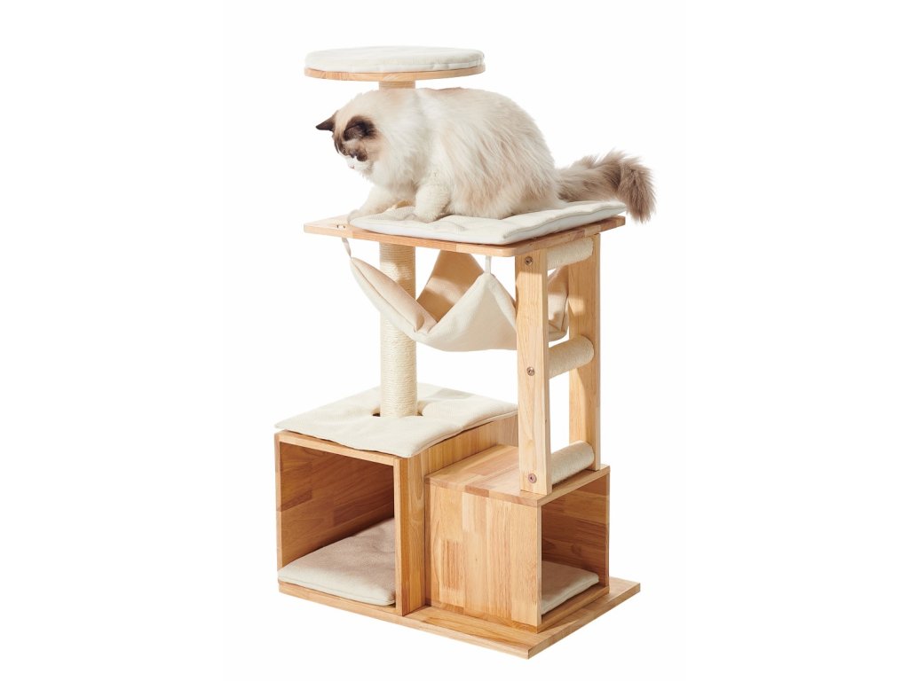 Sisalové stĺpy o priemere 7 cm sú ideálne pre ostré mačacie pazúry, poskytujúce bezpečný a odolný povrch na škrabanie. Škrabací strom Ligno je obohatený o rôzne prvky ako sú rebríková konštrukcia, pohodlné vankúše a príjemná hojdacia sieťka, ktoré poskytujú vašej mačke rôznorodé možnosti na hranie a relaxáciu.
