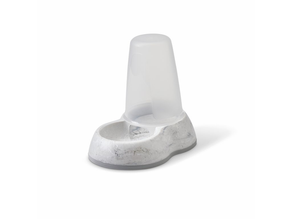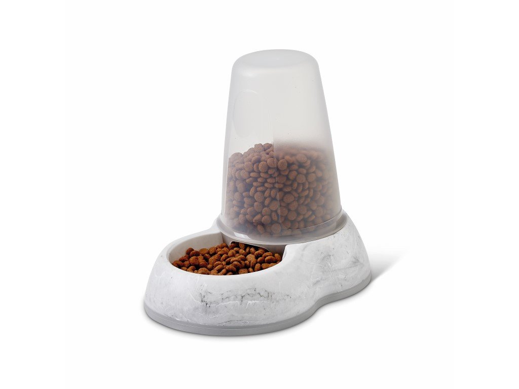 Zásobník má elegantný mramorový dizajn, ktorý sa hodí do každého interiéru a stane sa skutočným lákadlom. Jeho povrch je navrhnutý tak, aby bol protišmykový, čo zaisťuje bezpečné a stabilné umiestnenie na akomkoľvek povrchu. Vďaka praktickej rúčke je zásobník jednoduchý na manipuláciu.