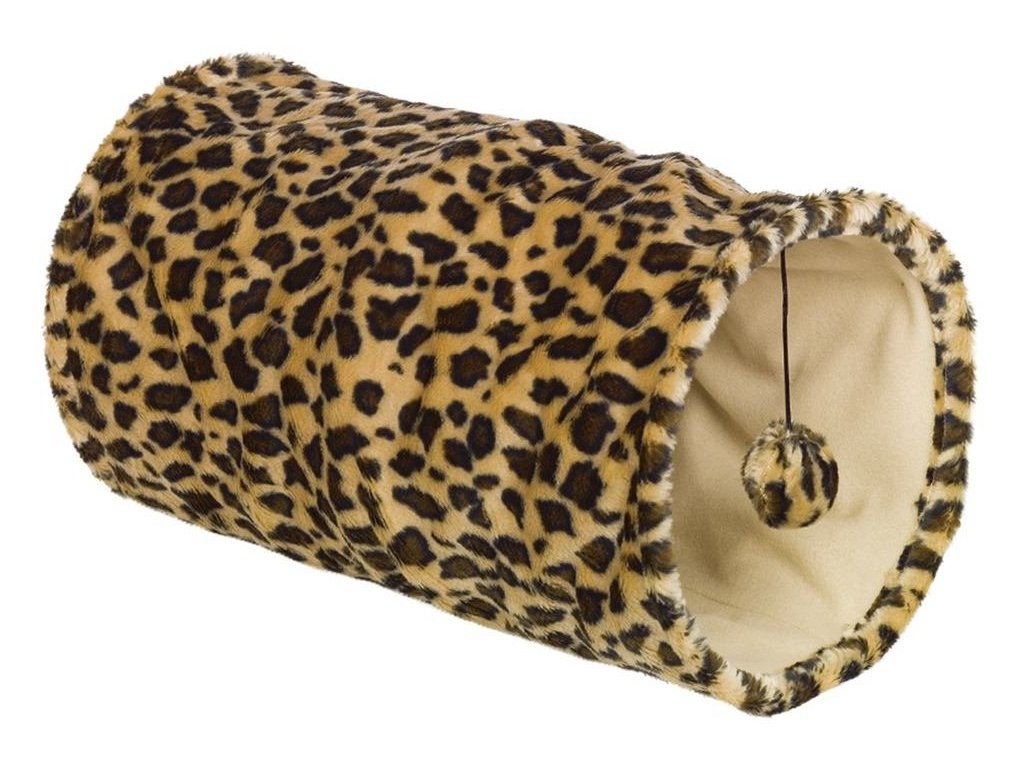 Plyšový šuštivý tunel pre mačky Nobby Leopard s leopardím vzorom.