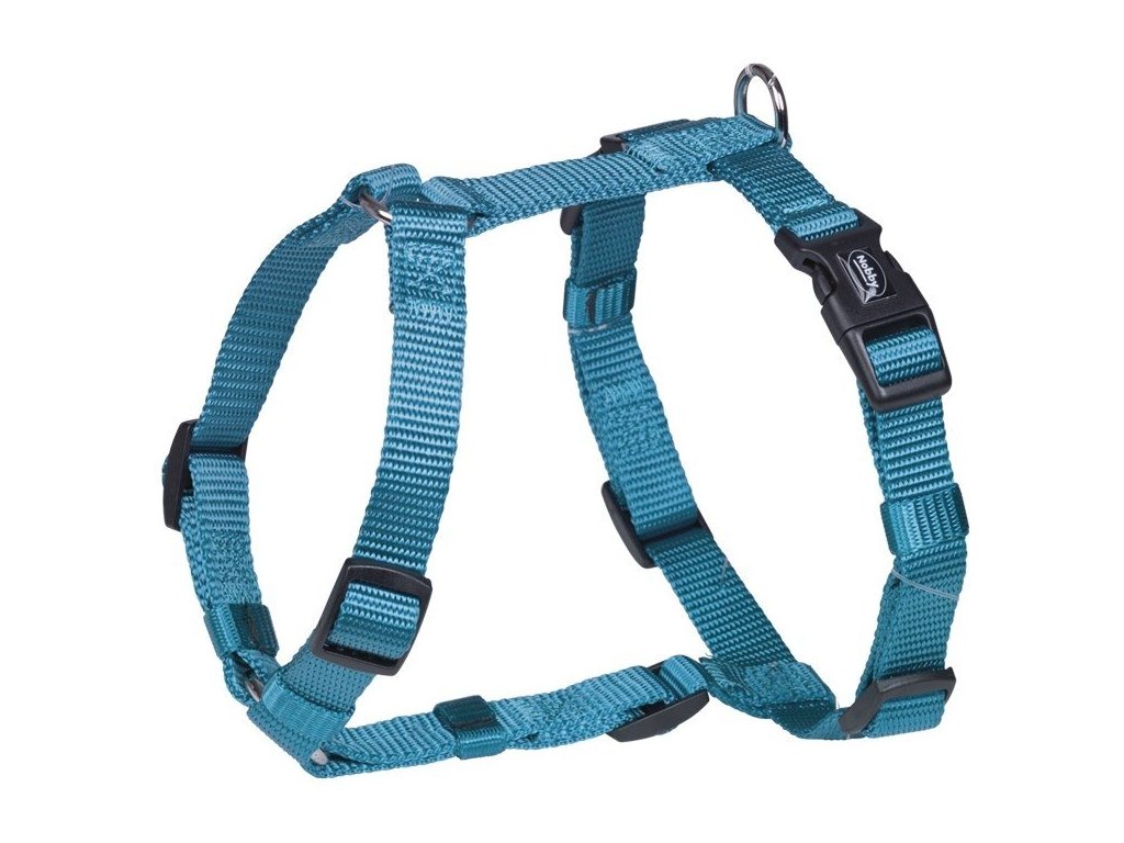 Základný jednovrstvový postroj Nobby Classic vyrobený z nylonu vo veľkosti XS-S pre obvod hrudníka 20-35cm v svetlomodrej farbe.