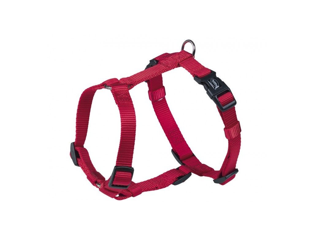 Základný jednovrstvový postroj Nobby Classic vyrobený z nylonu vo veľkosti XXS pre obvod hrudníka 14-20cm v červenej farbe.