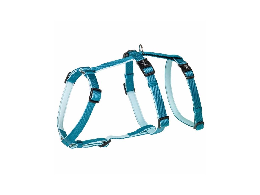 Bezpečnostný postroj pre psy s možnosťou nastavenia vystužený neoprénom Nobby Turva vo veľkosti XS pre obvod hrudníka psa 24-34cm vo farbe - bledo modrá.