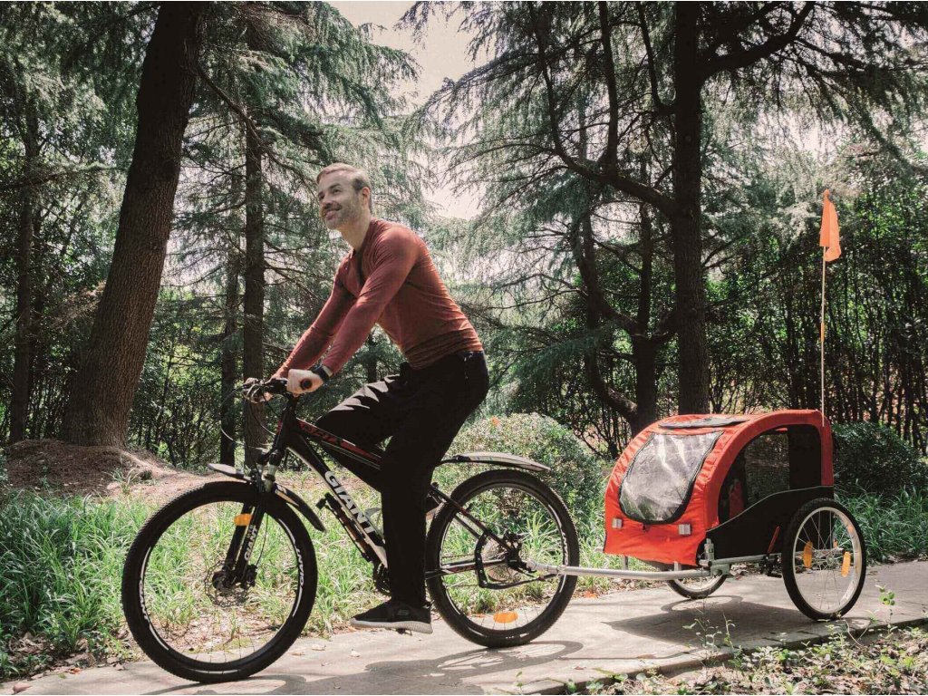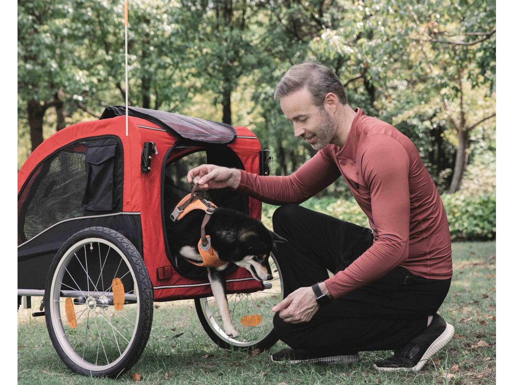 Kvalitný príves za bicykel pre psov a mačky do 35kg s ľahkou a pevnou konštrukciou na túry a cesty Nobby Senlima L vo farbe - červená/čierna.