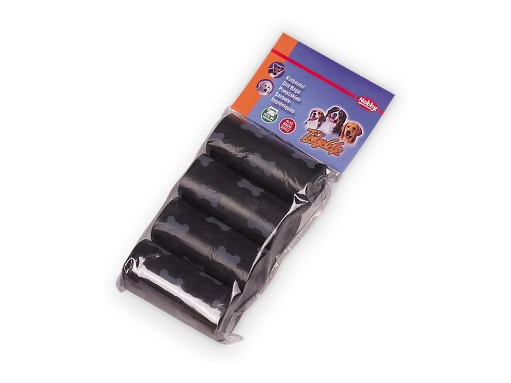 Pevné sáčky na exkrementy pre psov Nobby TidyUp so vzorom kostičiek vo farbe - čierna, 4 rolky po 15 sáčkov.