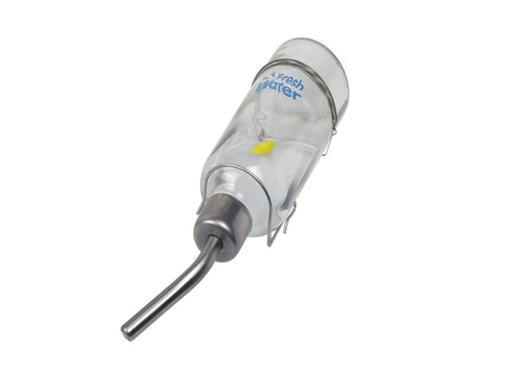 Sklenená fľaša na vodu do klietok pre zajace, morčatá a iné malé zvieratá s objemom 177ml.
