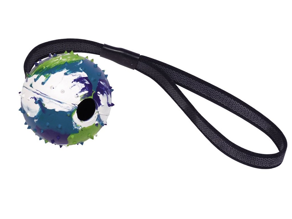 Hračka pre psy z tvrdej gumy na hádzanie z priemerom lopty 7cm a celkovým rozmerom 39cm.