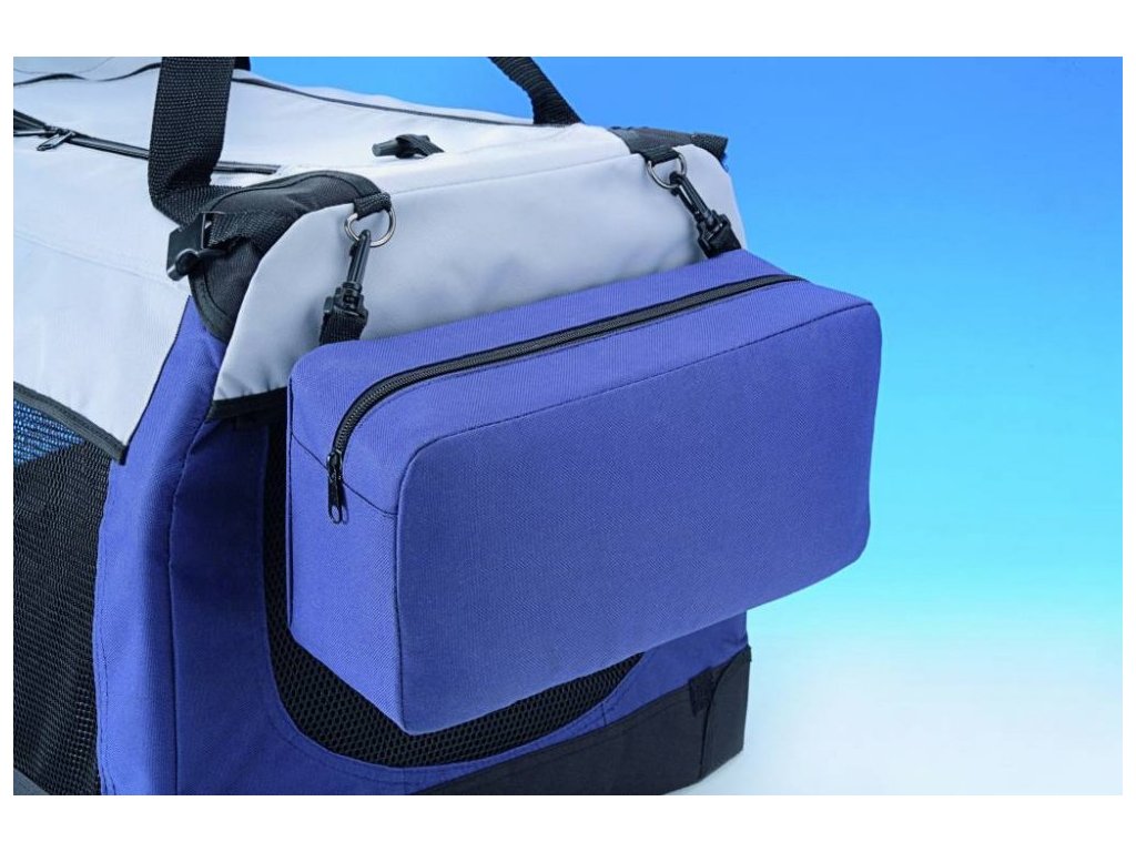 Prepravná taška alebo vystavný box pre psy pre poskytnutie pokoja a bezpečia Nobby Traveller Plus XXL v modro-šedej farbe.