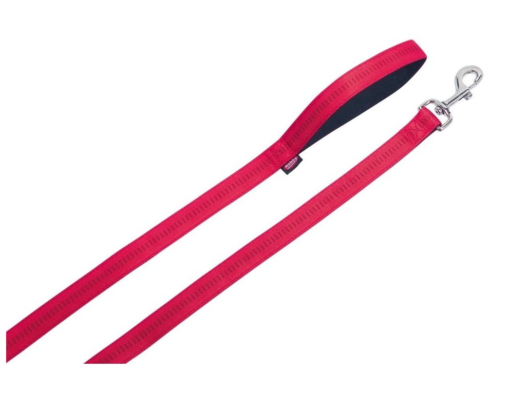Vodítko pre psy z 2-vrstvového nylonu Soft Grip veľkosti L-XL vo farbe červená s celkovou dĺžkou 1,8m a šírkou 25mm.
